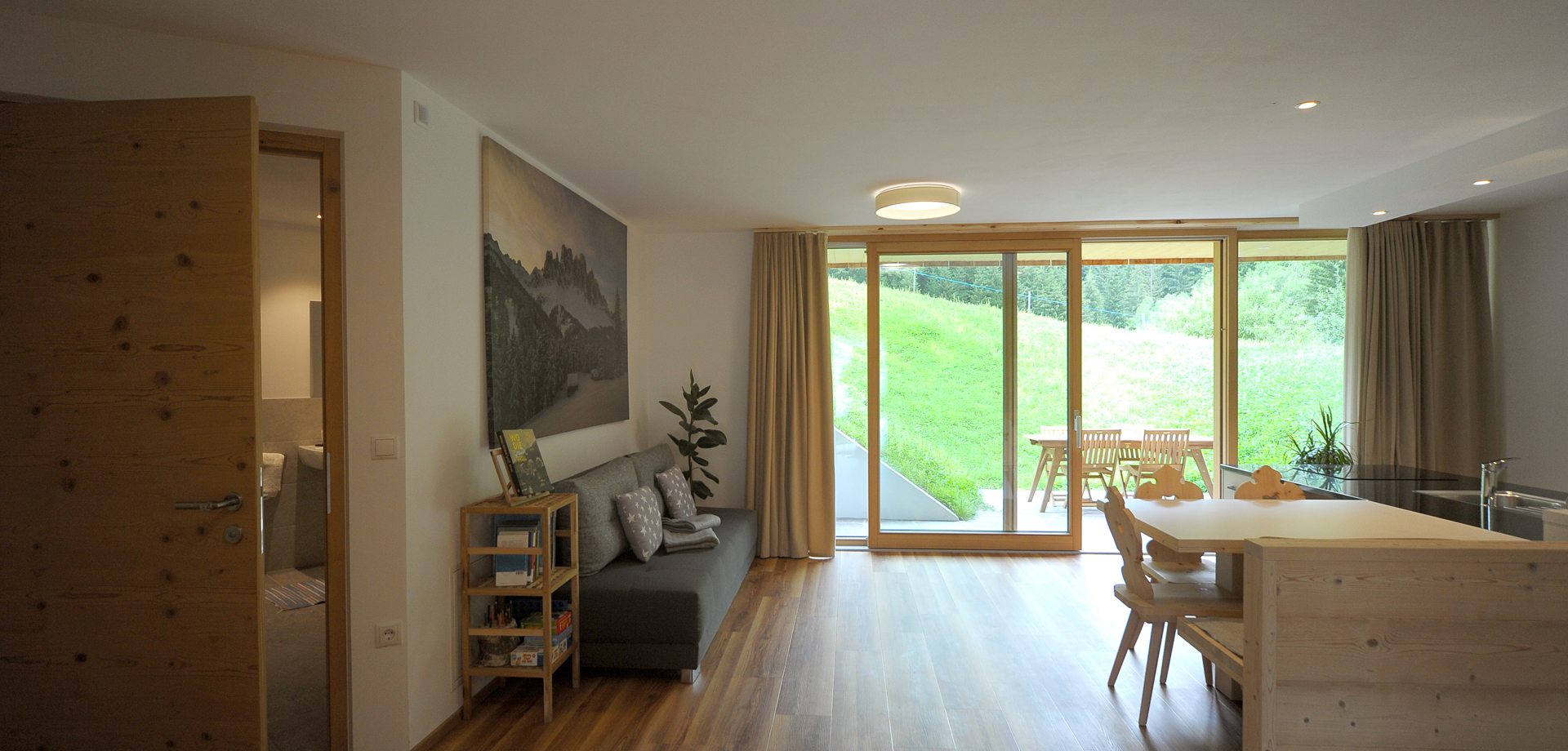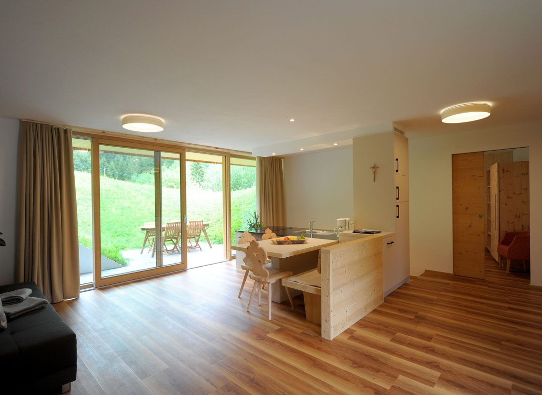 Das Chalet „Winterzauber” ist speziell für Großfamilien eingerichtet. Es verfügt über zwei getrennte Doppel-Schlafzimmer aus Massiv Holz. Ein Zimmer mit zusätzlichem Stockbett. Bei Bedarf steht ein Kinderbett bereit. Im Ess- und Wohnbereich befindet sich ein ausziehbares Doppelschlafsofa mit TV- und Lese Ecke. Der private Außenbereich ist von der Wohnküche aus erreichbar, mit Blick in den Wald.