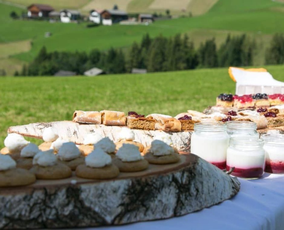 Wir bieten einen Catering-Service im Eisacktal und auf Anfrage in ganz Südtirol an. Unsere hofeigenen Produkte finden bei Feiern und verschiedensten Anlässen sehr großen Anklang. Wir backen selbst Brot und verfeinern es mit unserem Bio-Käse, leckeren Kräuter-Aufstrichen und hofeigenen Bio-Speck. Unser cremiger Bio-Joghurt, wird mit Obst der Saison verfeinert und zum Abrunden des Buffets bieten wir eine Reihe von verschiedenen Kuchenvariationen und andere traditionelle Süßspeisen, wie Krapfen, Apfelstrudel, Buchweizen- Sahnetorten usw. so steht einem gelungenen Fest nichts im Wege. Den Service und den Ausschank der Getränke Ihrer Wahl bieten wir ebenfalls gerne an.