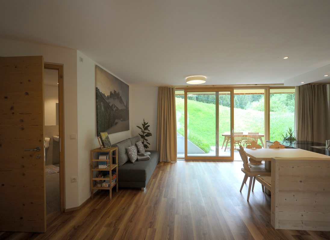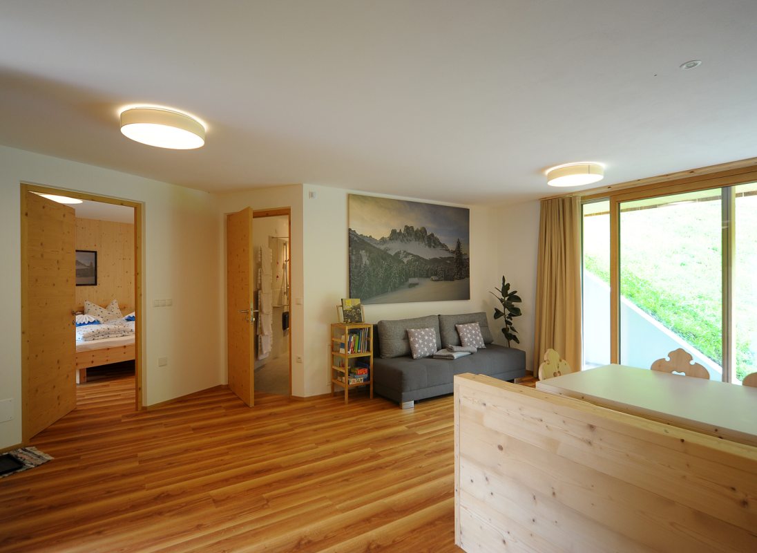 Das Chalet „Winterzauber” ist speziell für Großfamilien eingerichtet. Es verfügt über zwei getrennte Doppel-Schlafzimmer aus Massiv Holz. Ein Zimmer mit zusätzlichem Stockbett. Bei Bedarf steht ein Kinderbett bereit. Im Ess- und Wohnbereich befindet sich ein ausziehbares Doppelschlafsofa mit TV- und Lese Ecke. Der private Außenbereich ist von der Wohnküche aus erreichbar, mit Blick in den Wald.